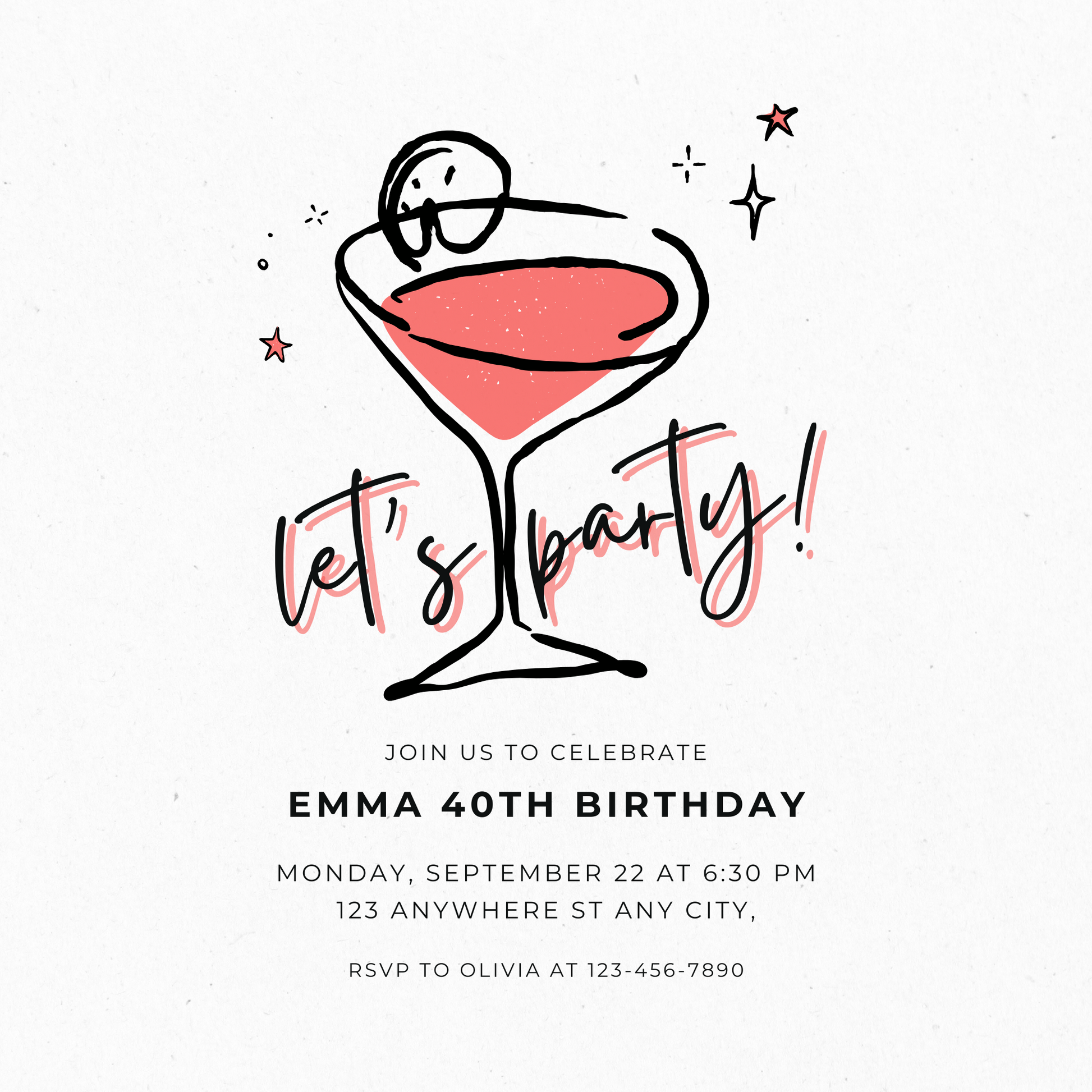 Celebrate four decades of laughter, love, and unforgettable memories with 40th JOY - a sophisticated and cheerful birthday invitation designed to honor life’s beautiful journey. With elegant details and a touch of sparkle, this template sets the perfect tone for a joyful gathering filled with friends, family, and fabulous vibes.